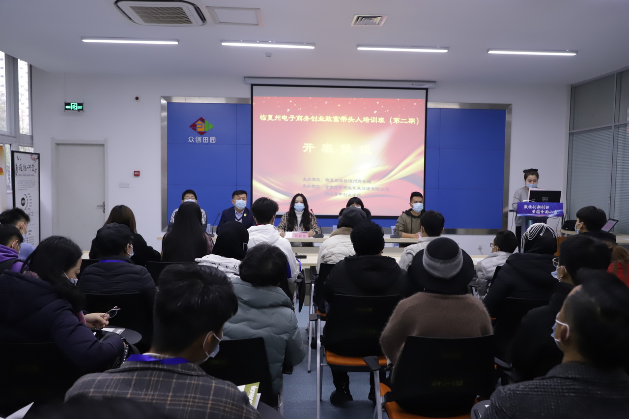 本次活动由临夏回族自治州商务局主办,甘肃德吉商业发展管理有限公司联合杨凌青年创业学院共同承办。此次开班仪式的领导和嘉宾有临夏州商务局副主任苟翠英、甘肃德吉商业发展管理有限公司总经理徐克娟,陕西省农村青年致富带头人协会会长、杨凌青年创业学院院长黄磊,杨凌职业技术学院教授、杨凌青年创业学院创业导师郭伟,本次培训班负责人张志强及临夏州各区县商务部门带队负责人等100余人。