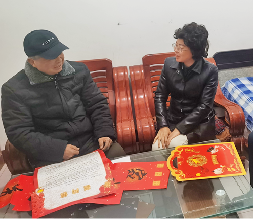在五泉镇斜上村,胡纪美为省第三届孝老爱亲道德模范赵秋香送去新春祝福,希望她继续传承这种孝老爱亲的精神,发挥道德模范的示范引领作用。