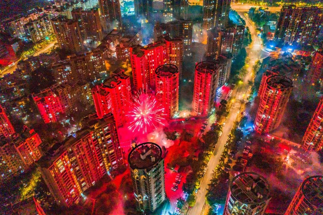 2021年2月12日,福州,当午夜交正子时,新年钟声敲响。
